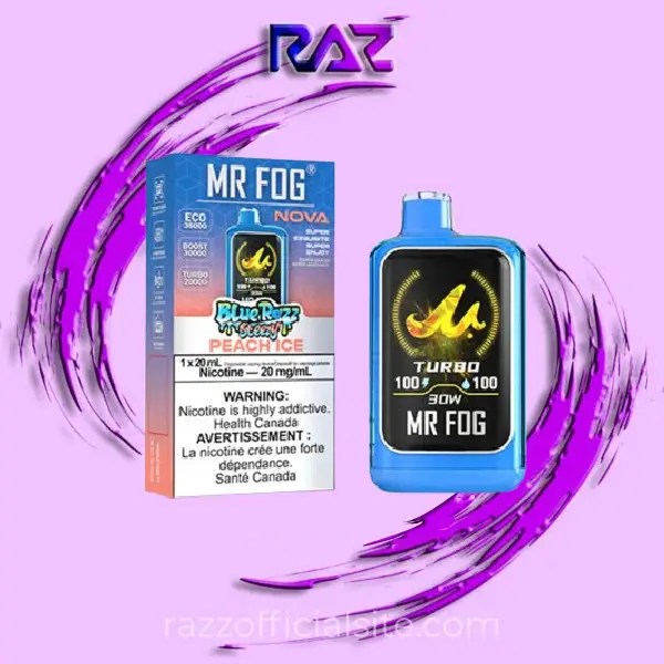 Peach Ice Mr Fog Nova is a disposable vape made for users who want a light peach flavor with a cool feel. It offers a simple everyday experience with long usage life. The device is part of the Mr Fog Nova 36K Puffs Disposable range, designed for convenient use without refills or coil replacements.